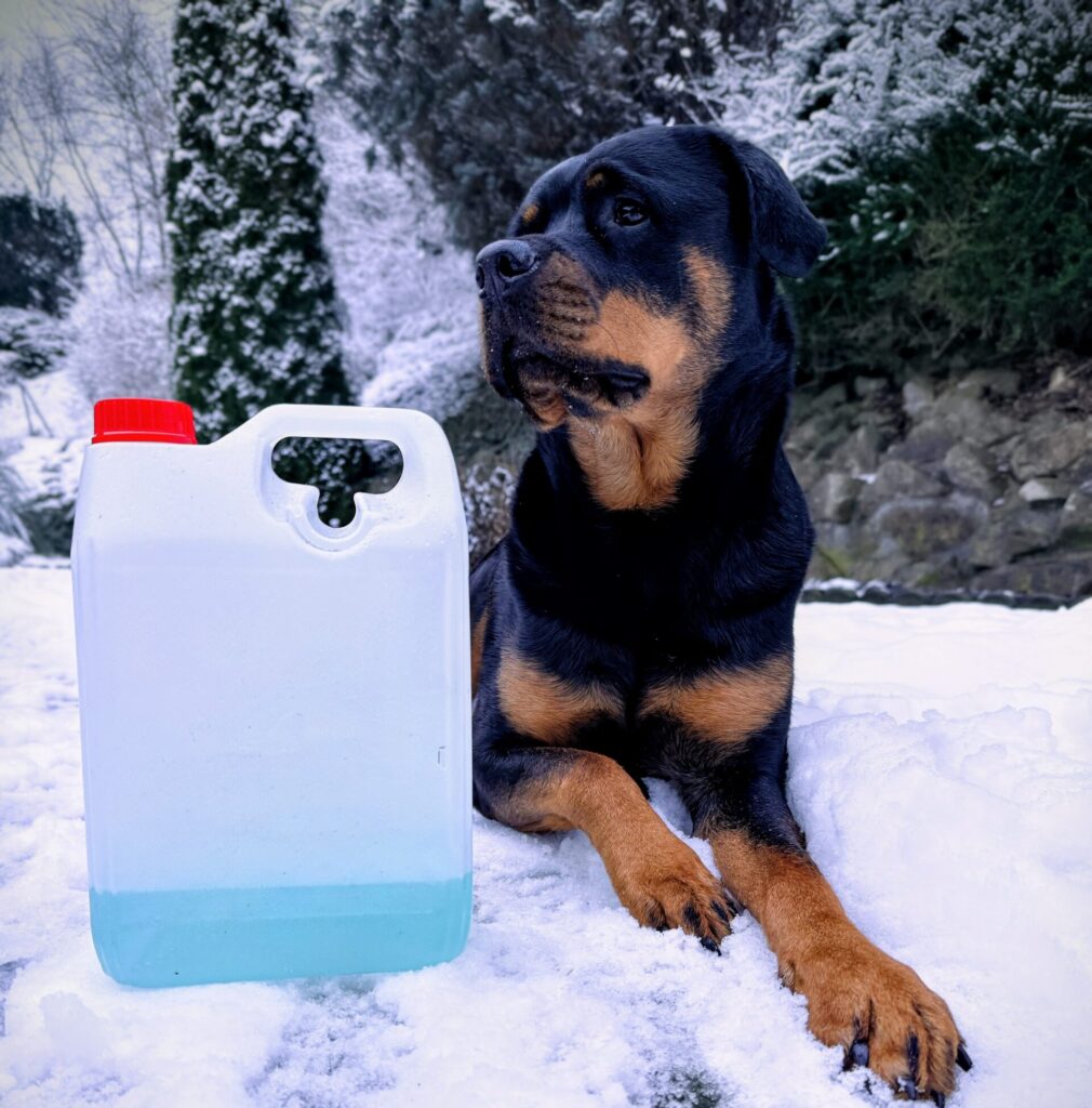 Frostschutzmittel (z. B. für Autos oder Heizungen) enthalten meist Ethylenglykol – eine teils farblose, süßlich schmeckende Flüssigkeit, die für Hunde und Katzen hochgiftig ist. Schon kleinste Mengen können zu tödlichem Nierenversagen führen.